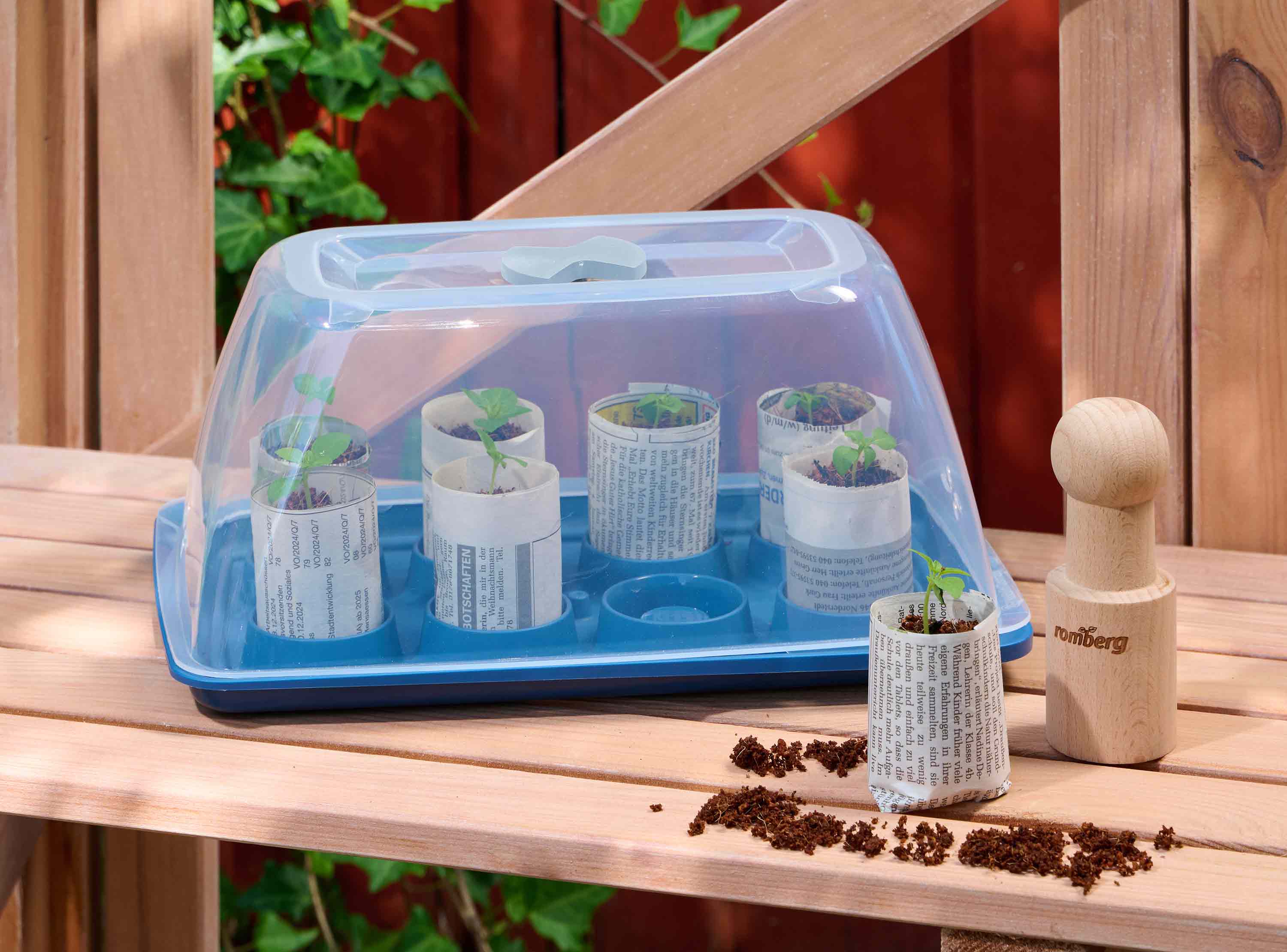 Bastle aus alter Zeitung eigene Anzuchttöpfe und zieh darin deine Pflanzen groß – kreativ, nachhaltig und kinderleicht. Die Romberg Anzucht-Erlebnisbox vereint DIY-Spaß mit echtem Gärtnern: Mini-Gewächshaus, Papiertopfpresse, torffreie Kokoserde & mehr. Ideal für Familien, Schule & Kita – drinnen wie draußen.