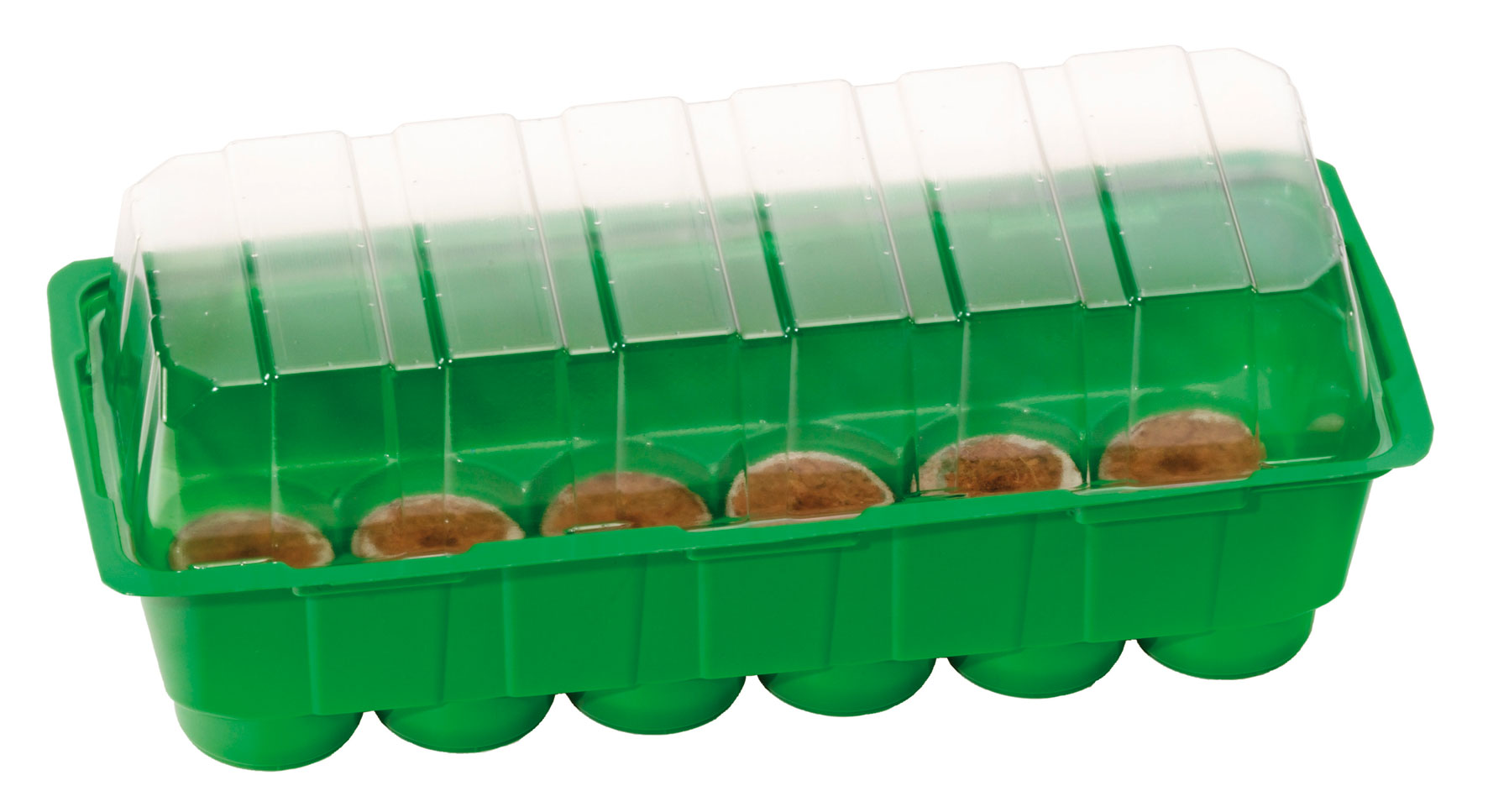 Deine Gartenwelt ist klein? Dann hast du zwar wenig Platz, aber bestimmt jedes Jahr einen gut strukturierten Plan für deine Anzucht. In dem überschaubar 27,5 x 11,5 x 11 cm großen Anzuchthaus S PLUS COCO, kannst du drinnen wie draußen sicher Blumen, Gemüse und Kräuter vermehren. Denn es steht gefahrlos auf schmalen Fensterbänken und Regalbrettern und schenkt den Pflanzen eine unbeschwerte Kindheit. Anzuchthaube und Anzuchtschale sind aus einer bis zu 80 % recycelten Kunststofffolie gezogen. Zusammen sorgen sie dafür, dass im lebensmittelechten Anzuchthaus S PLUS COCO ein perfektes Kleinklima herrscht. Die durchsichtige Anzuchthaube lässt viel Licht einfallen und jeden Tropfen vom Kondenswasser in die Anzuchtschale zurückfließen. So bleiben die Jungpflanzen gesund und die Stellfläche sauber. Die Anzuchtschale hat die Aufgabe, das Gießwasser über ein Rinnensystem am Boden gleichmäßig zu verteilen. Zudem zeigt die Bodenstruktur, wo du die 12 Kokos-Quelltabletten sicher platzierst.