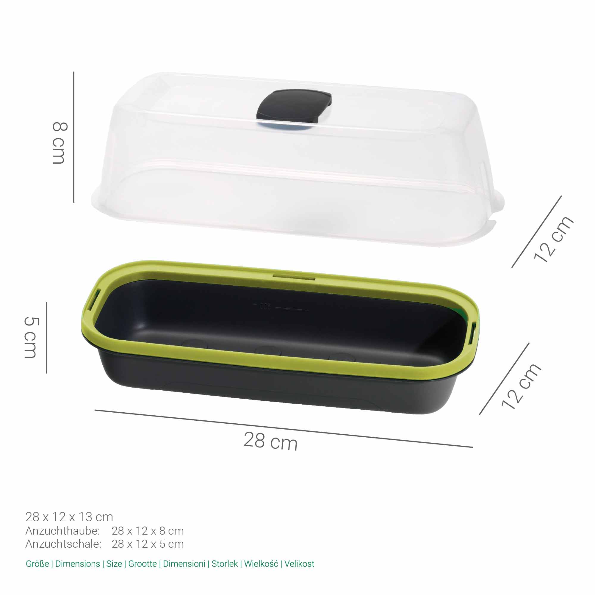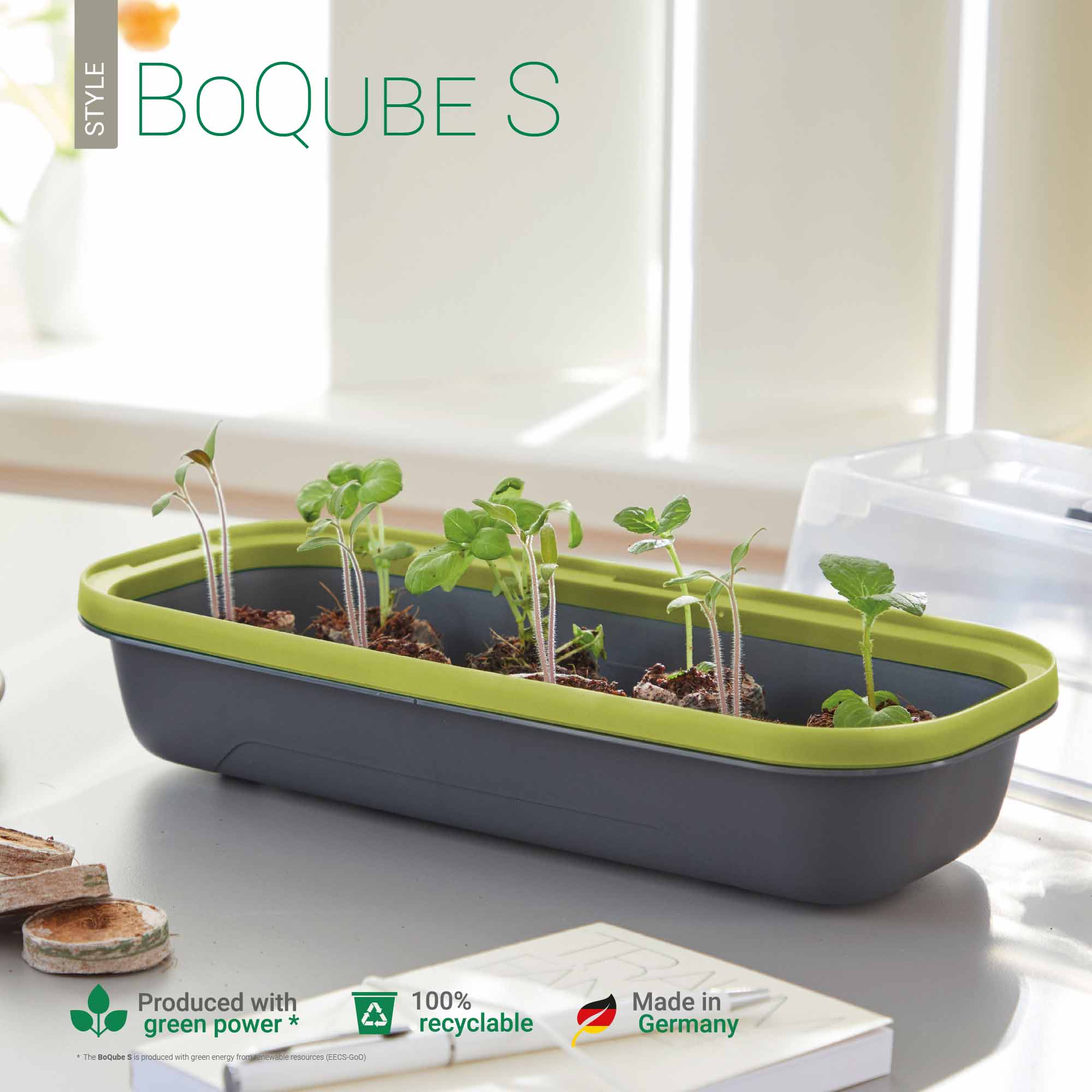 City-Gärtnern bringt so viel Spaß. Denn du kannst jedes Jahr Neues ausprobieren. Leider hat nicht jeder ein Zuhause mit viel Raum für eine beschützte Anzucht von Blumen, Kräutern und Gemüse. Aber das braucht es auch nicht! Das Mini-Gewächshaus BoQube S von Romberg ist für diejenigen bestimmt, die wenig Platz haben, gleichzeitig eine kleine Anzahl verschiedener Pflanzen für ihre Töpfe, Kästen und Hochbeete anziehen möchten und ein Faible für funktional gestylte Gewächshäuser haben. Die recycelbare Anzuchtschale vom Gewächshaus BoQube S hat Platz für 8 Kokos-Quelltabletten und kann mit einer Grundfläche von 28 x 12 cm selbst auf schmalen Fenstersimsen sicher aufgestellt werden. Zusammen mit der BoQube Anzuchthaube S formt sie ein perfekt ausgestattetes 13 cm hohes Zimmergewächshaus. Da der Kunststoff vom schicken BoQube Gewächshaus S nach einem Bad im Spülwasser tipptopp aussieht, ist es jahrelang ein Hingucker. Eben: Klein und fein!