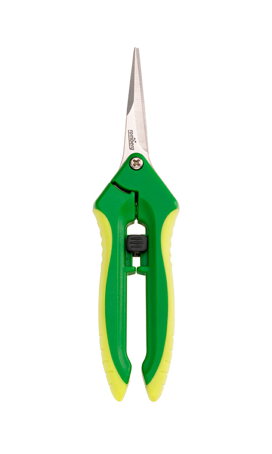 Hochqualitative leichte Ernteschere von Romberg mit gebogenen Edelstahlklingen für anspruchsvolle Hobbygärtner. Die Schere "Curved" verfügt über ein Federmechanismus sowie einen Sicherheitsverschluss. Ergonomisch geformte Griffe mit weichen Anti-Rutsch-Einlagen sorgen für eine angenehme und sichere Handhabung.