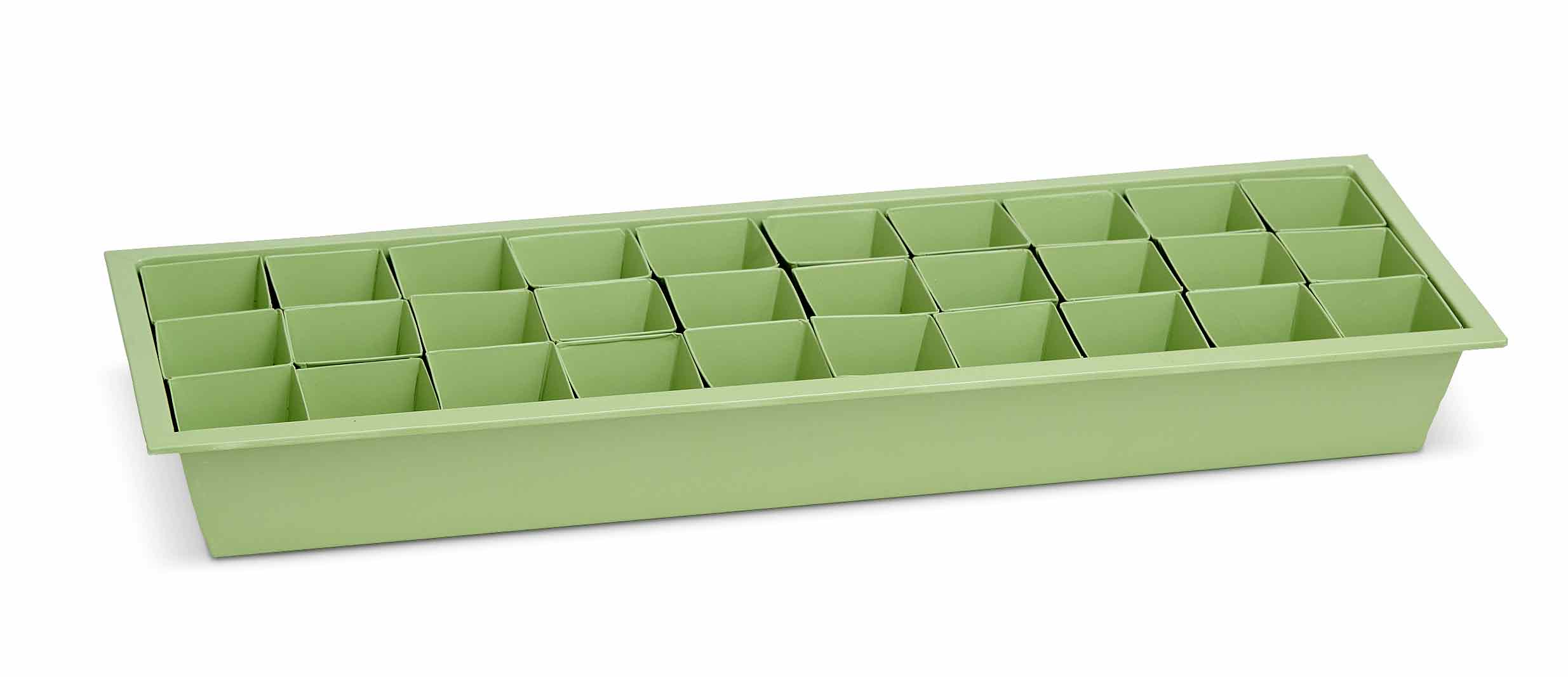 Set-Inhalt: 1 Zink-Anzuchtschale + 30 Zink-Anzuchttöpfe in grün
