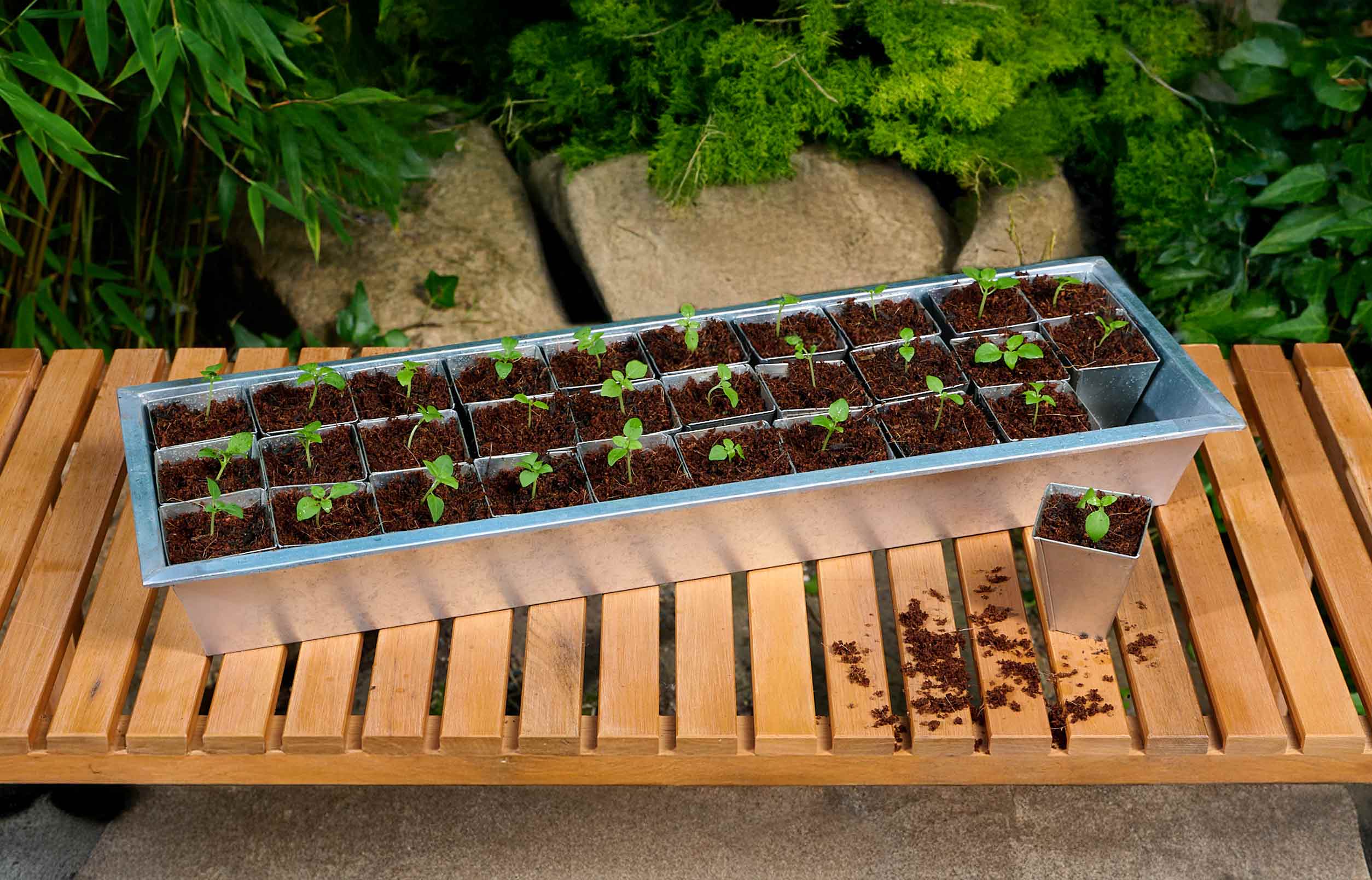 - Set-Inhalt: 1 Zink-Anzuchtschale + 30 Zink-Anzuchttöpfe