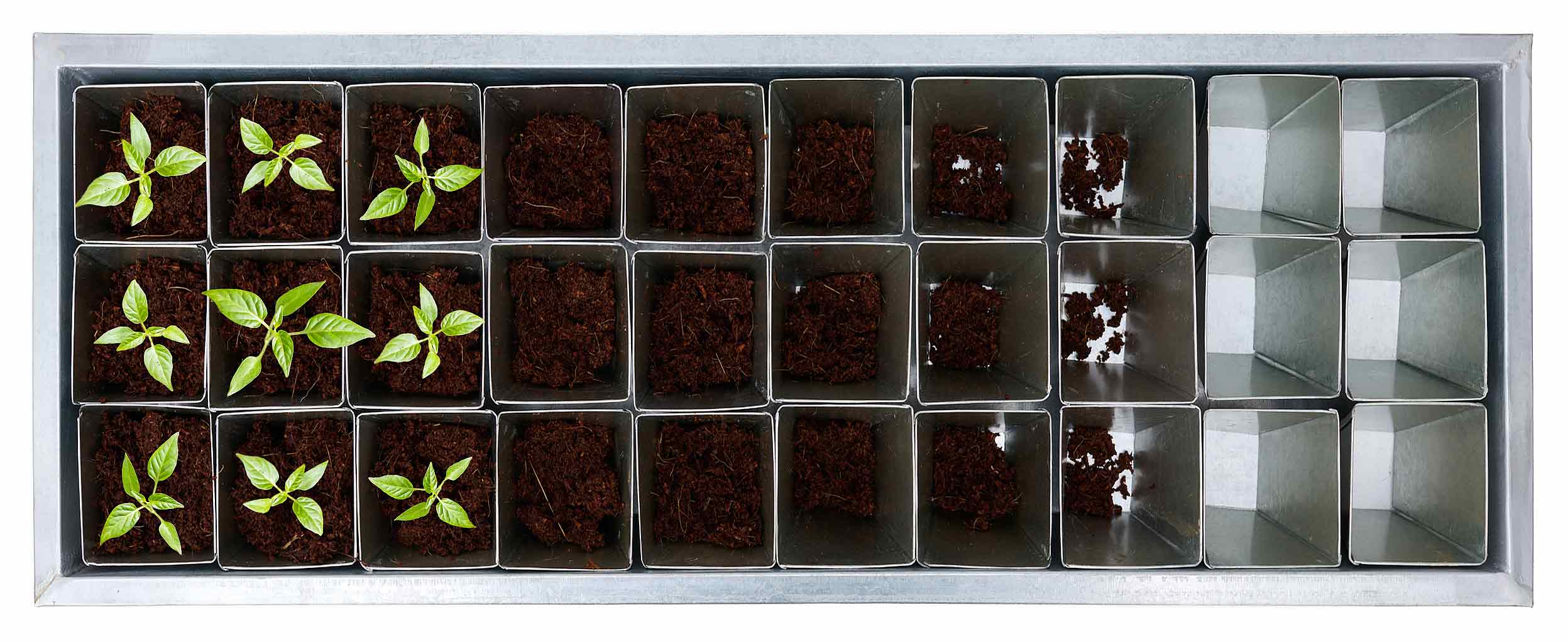 - Saatgut nach Packungshinweis in die Töpfe ausbringen.