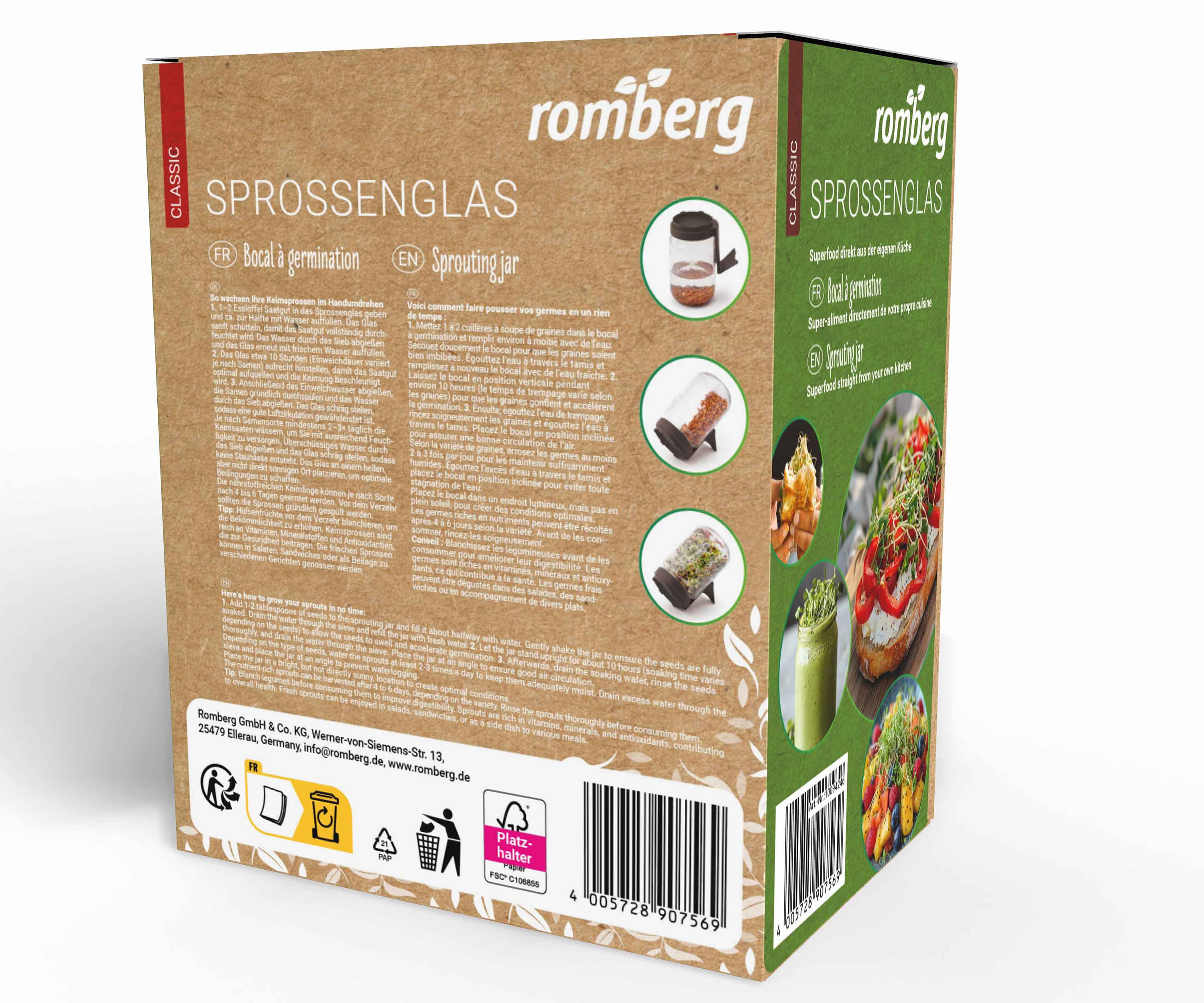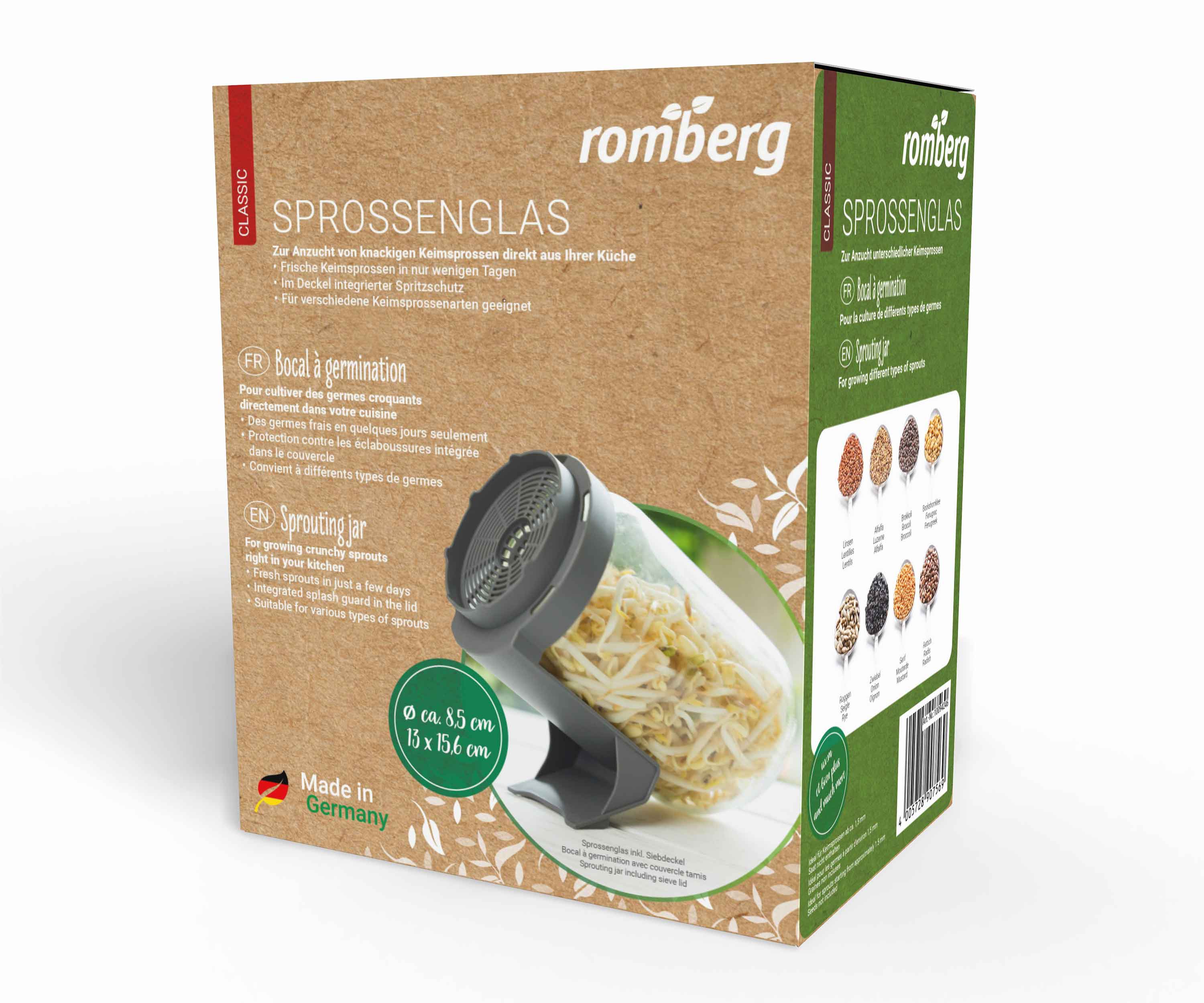Entdecke den Geschmack von frisch gezogenen Keimsprossen – direkt aus deiner Küche. Mit dem Romberg Sprossenglas gelingt dir die Anzucht ganz ohne Vorkenntnisse: gesund, hygienisch und unkompliziert. Ob Alfalfa, Radieschen oder Mungobohnen – in nur wenigen Tagen verwandelst du dein Saatgut in knackiges Superfood.