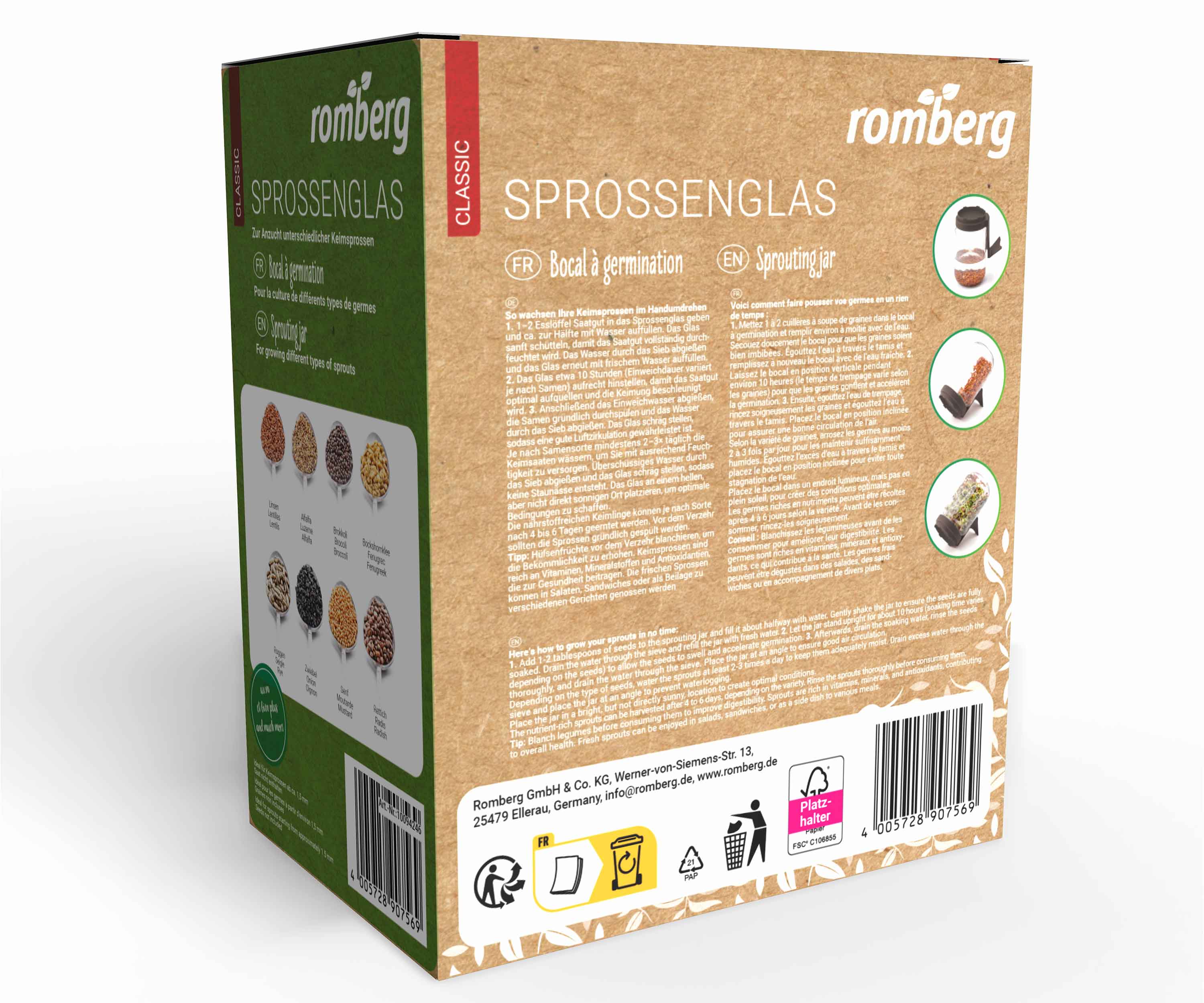 Mit dem Romberg Sprossenglas wird gesunde Ernährung zum Kinderspiel – und zum Hingucker in deiner Küche! Das 720 ml große Glas bietet ausreichend Platz für die Anzucht verschiedenster Keimsaaten wie Alfalfa, Radieschen, Kresse oder Mungobohnen. Dank des durchdachten Designs mit integriertem Siebdeckel und stabilem Halter steht dein Glas immer optimal – für perfektes Abtropfen und gleichmäßiges Keimen.